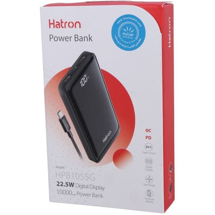 پاور بانک فست شارژ هترون HPB1055G QC PD 22.5W ظرفیت 10000 میلی آمپر ساعت