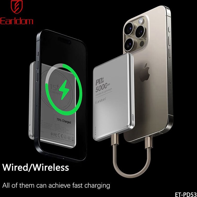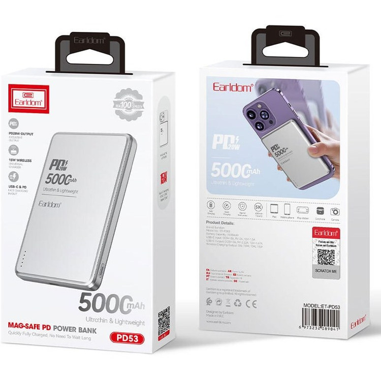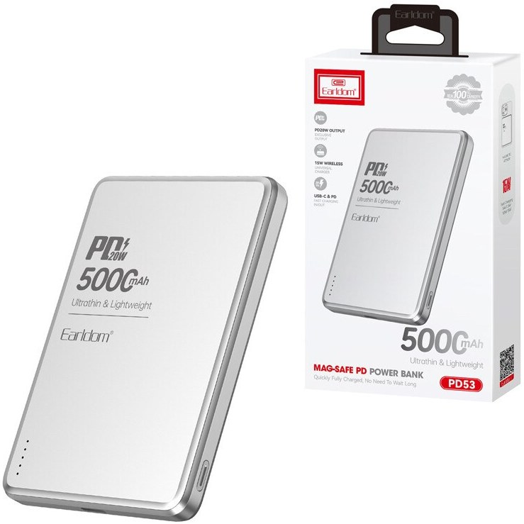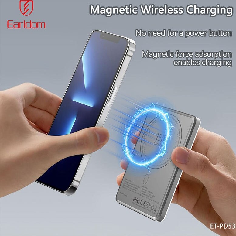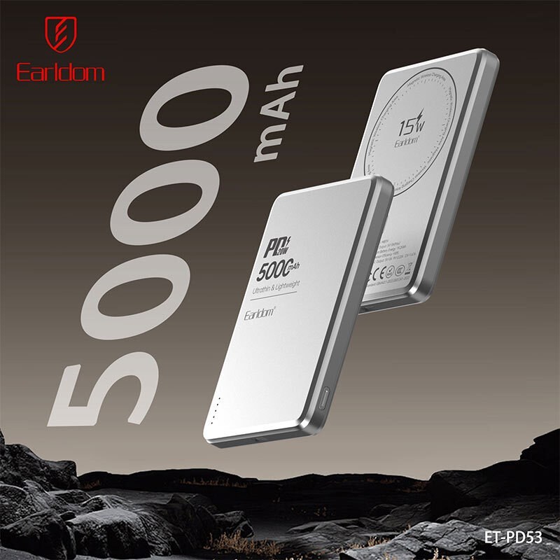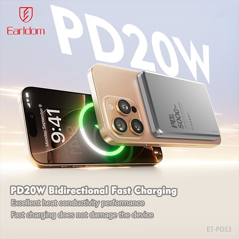 پاور بانک بی سیم فست شارژ ارلدام ET-PD53 PD 20W ظرفیت 5000 میلی آمپر ساعت