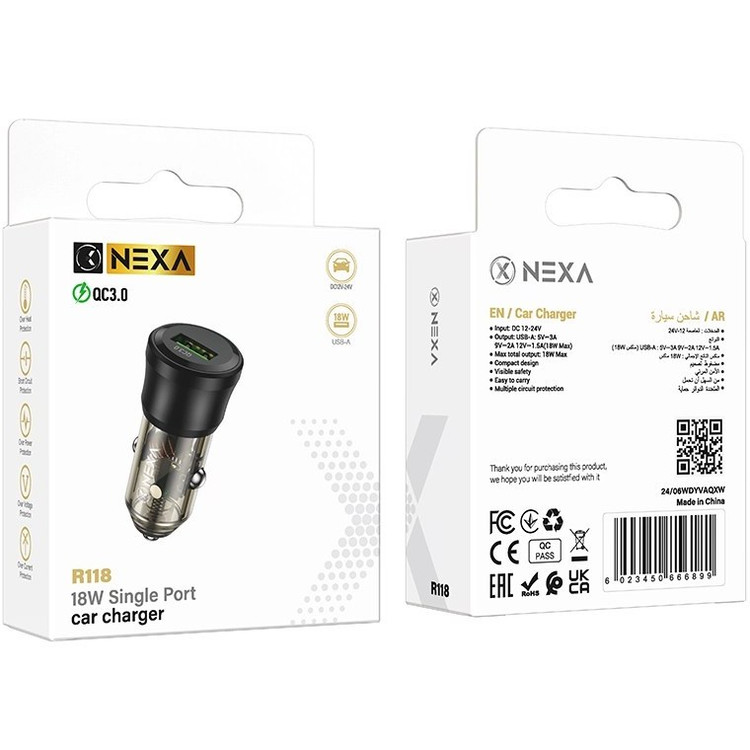 شارژر فندکی 18 وات برند نکسا مدل R118 مشکی